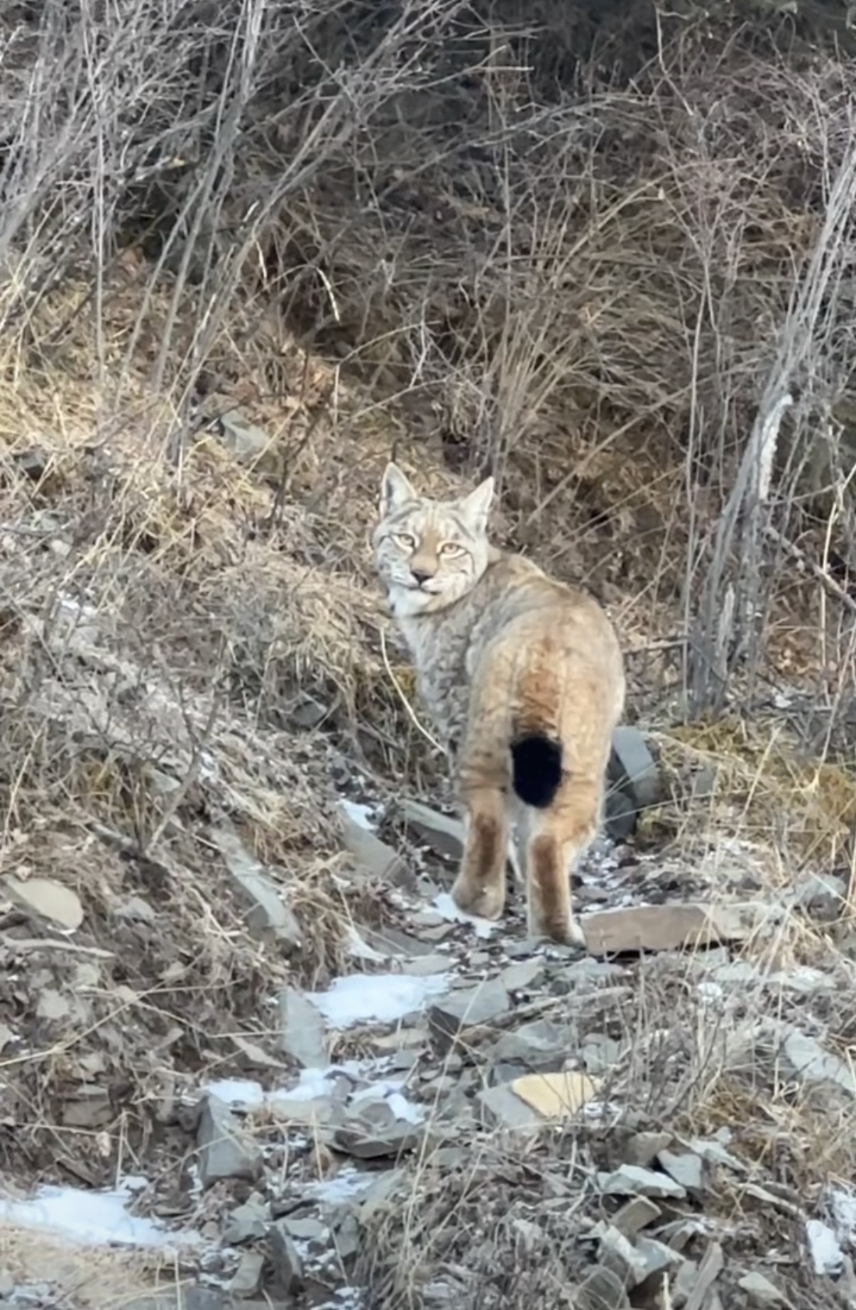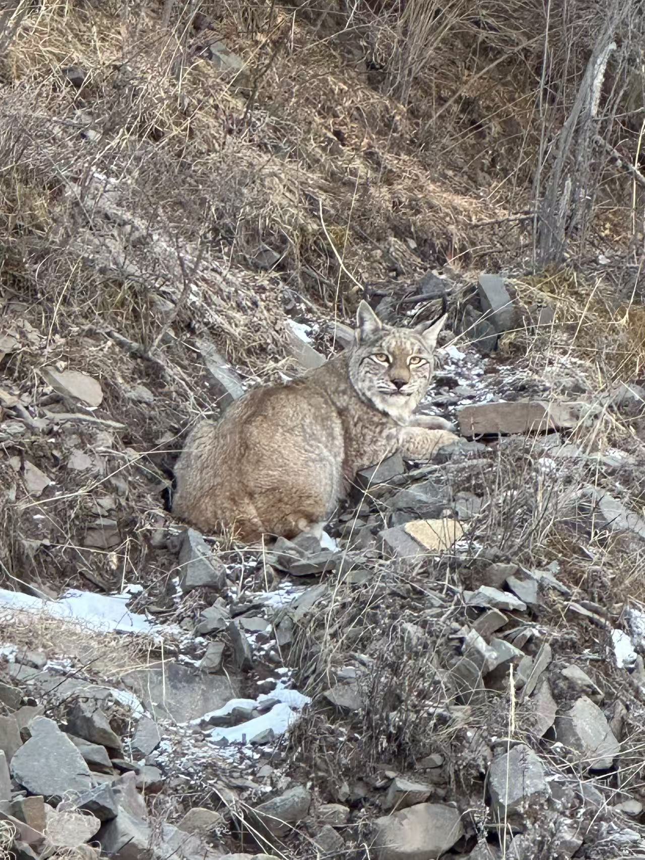1月6日中午,四川省甘孜州德格县司法局工作人员在下乡开展工作途中,于浪多乡境内惊喜邂逅两只国家二级保护动物猞猁。