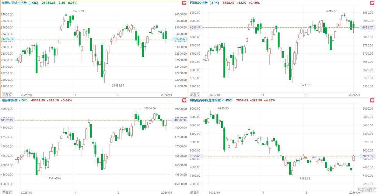 美股三大指数收盘涨跌不一,纳指高开低走,收跌0.03%,标普500指数微涨0.19%,道指涨0.66%。明星科技股表现分化,阿斯麦涨超近9%,美光科技涨超10%,二者股价均创历史新高。AMD涨超4%,英伟达涨超1%,谷歌微涨;特斯拉、微软跌超2%,亚马逊跌近2%,Meta跌超1%,苹果微跌。